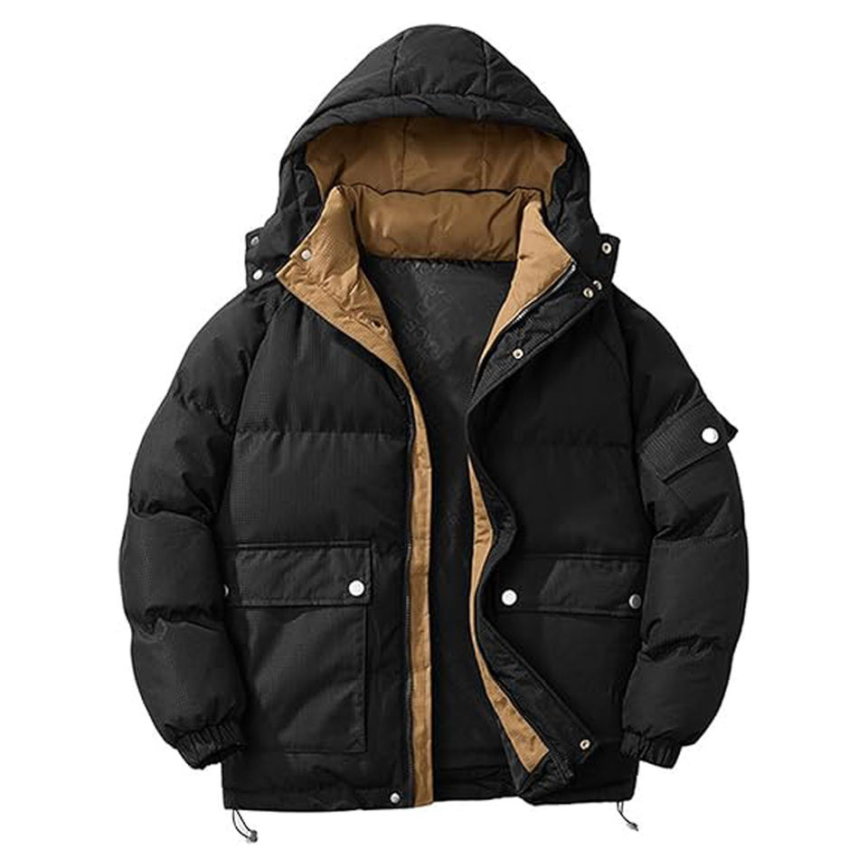 Men's windproof Woolen Puffer Jacket High Street Style Hooded Water Shell Material Front Logo windproof