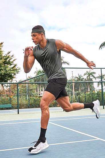 Men yellow orange sports vest sleeveless gym workout tank top quick dry breathable fitness activewear for running training