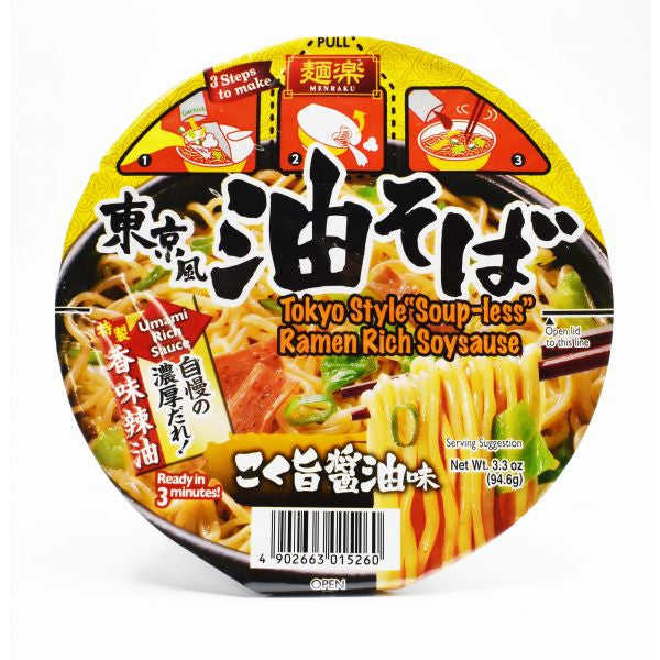MenRaku Tokyo-Style 'Soup-Less' Ramen Rich in Soy Sauce Bowl Packaging Wheat Flour Based Fried Processed