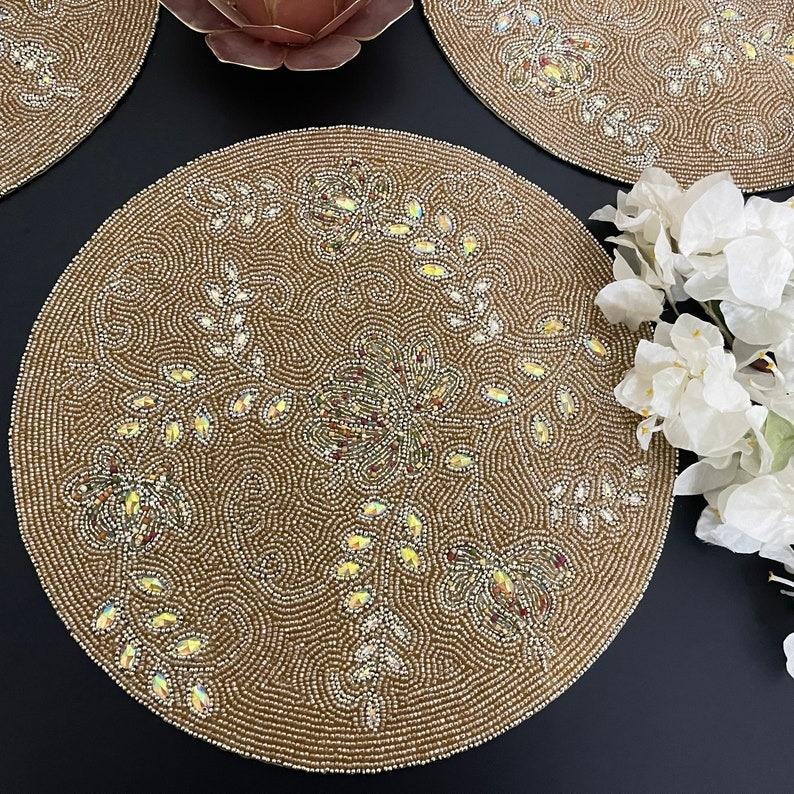 Luxury Menorah-Themed Hanukkah Embroidery Beaded Placemat Modern Table Mats Festival Dining Wedding Banquet Party Table
