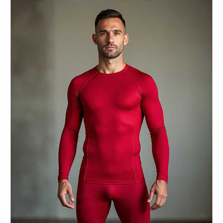 Mens 100% Polyester Swim Shirt Men Crew Neck Long Sleeve Compression Shirt Men's Gym Fitness Wear Rash Guard