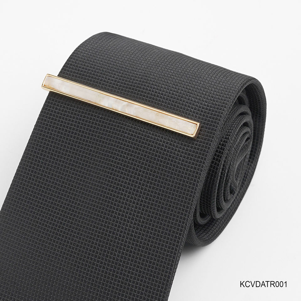 Mens 18K Gold-Plated Tie Clip with White Agate Gemstone | KCVDATR001 | Tinh Vu Collection