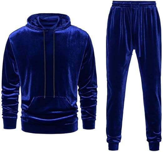 Mens 2 Pieces Velvet Sweatsuits Jogging Sport Tracksuit