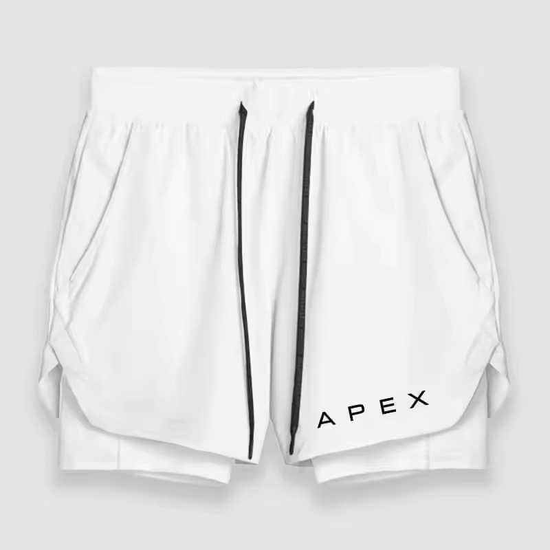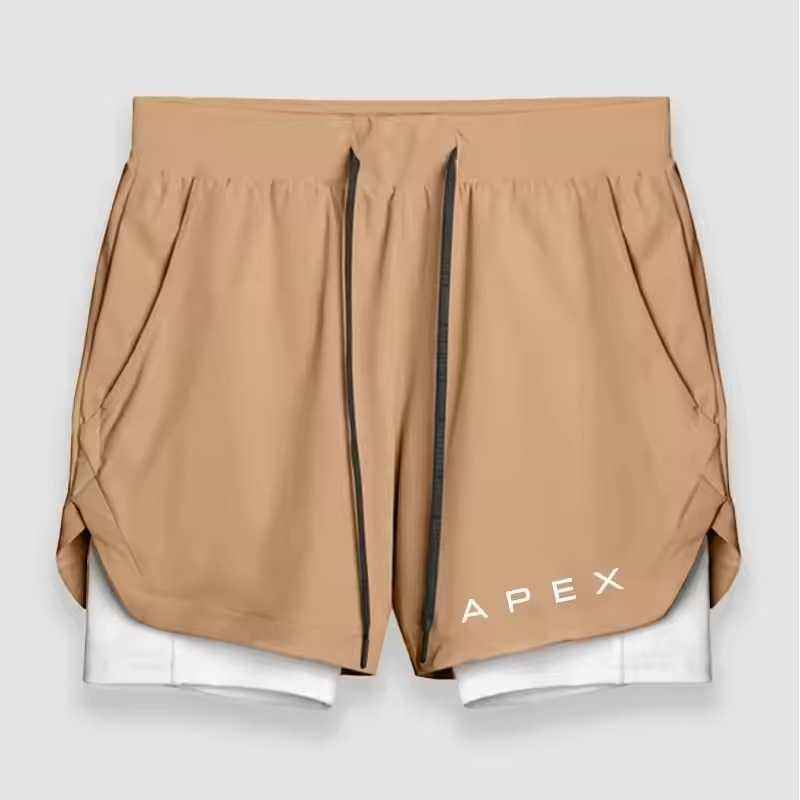 Mens 2 in 1 Running Gym Shorts with Liner Double Layered Shorts with a Stretchable Outer Layer and an Inner Compression Layer