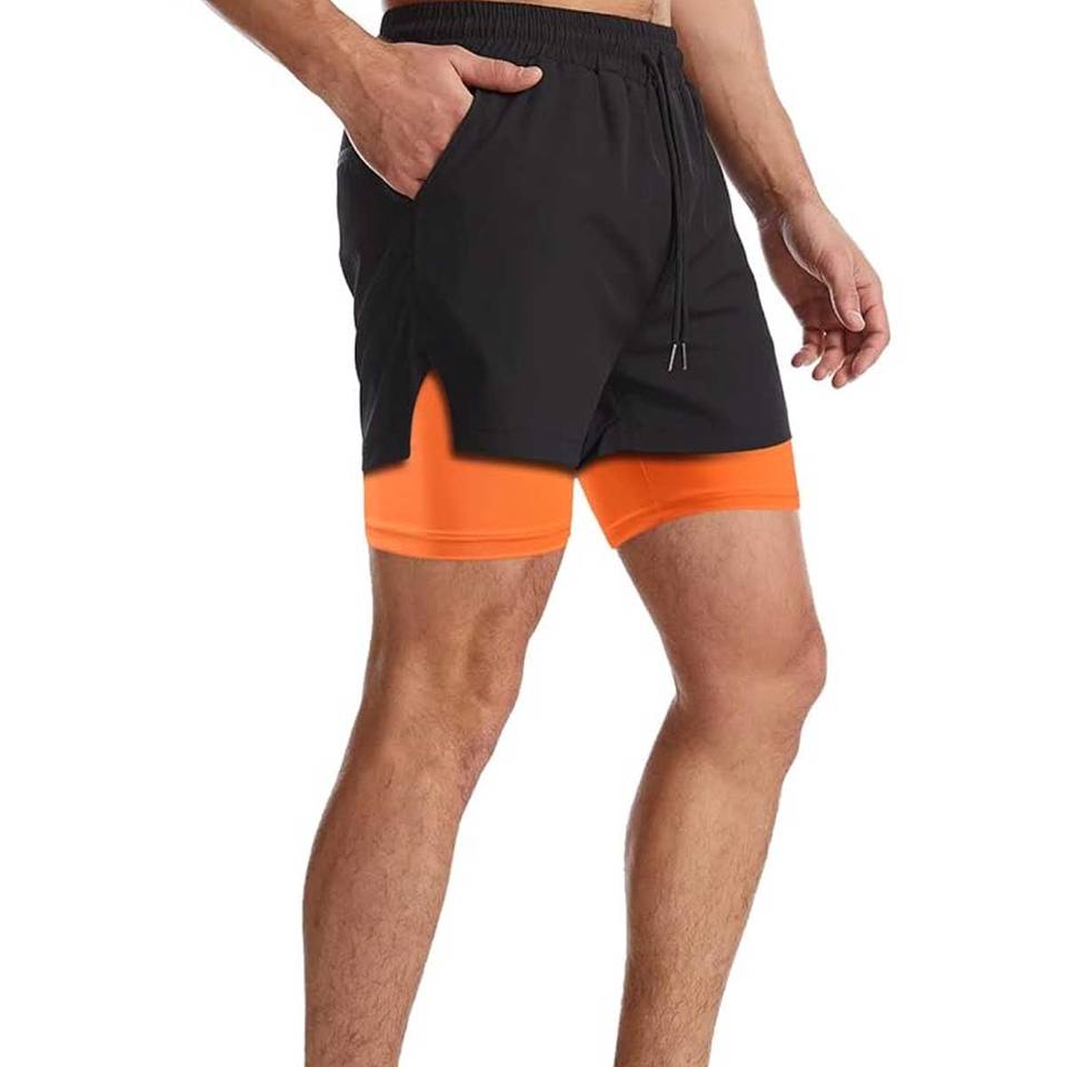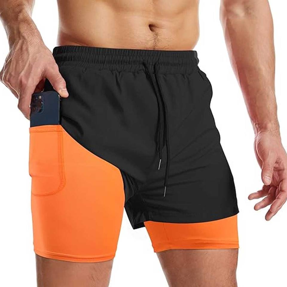 Mens 2 in 1 Running Shorts Gym Workout Quick Dry Athletic Training Liner Ligheweight with Zipper Pocket Short