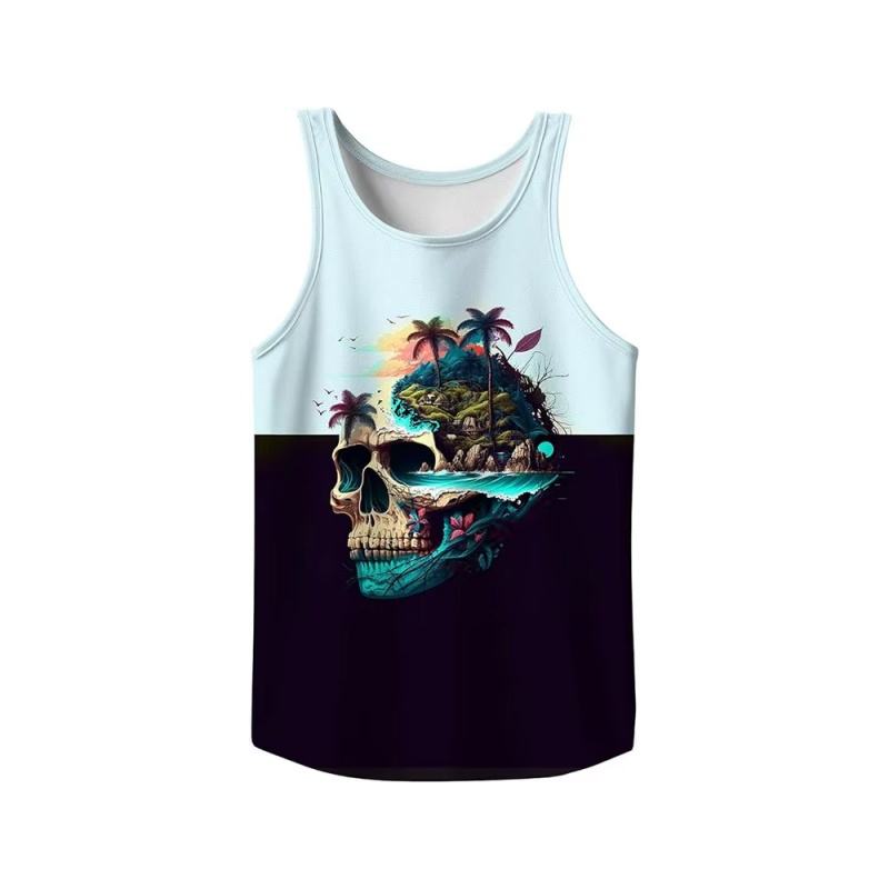 Mens 3D Print Skeleton Tank Top | Windproof Quick Dry Lightweight Regular Fit Summer Beach Shirt | Casual Sports Streetwear Tee