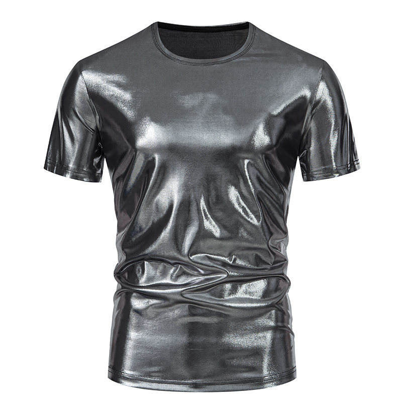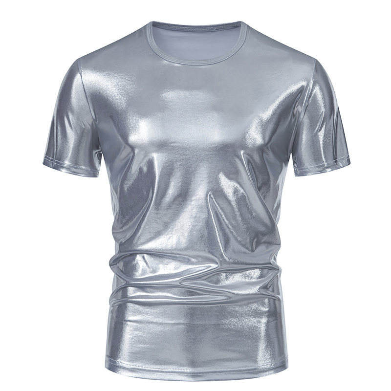 Mens 70s Metallic Shirts Short Sleeve Gold T-shirt Disco Party Club Tee Tops