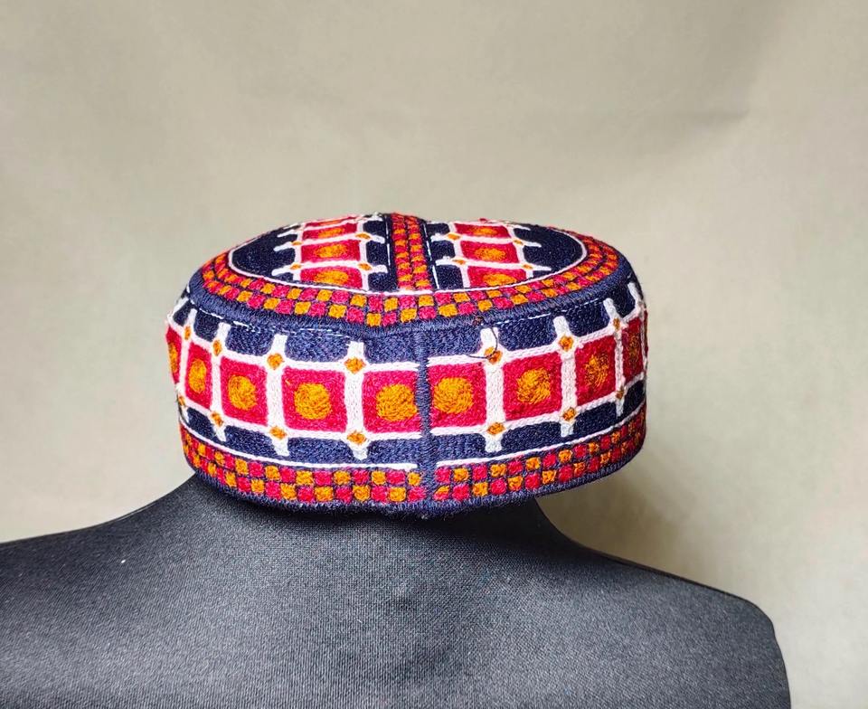 Mens Afghani Pashtun Traditional Cap Handmade Ethnic Cultural Embroidered Formal Lace Vintage Islamic All-Season Hat