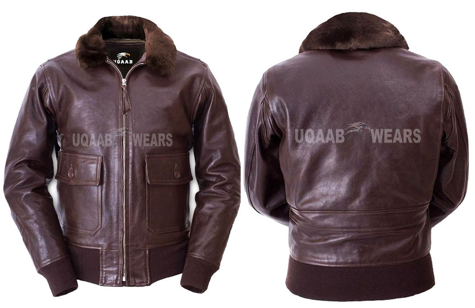 Mens Aviator G-1 Flight Crew Bomber Jacket R.A.F Vintage Fashion Shearling Fur Collar Fly Naval Pilot Casual Leather Jacket OEM