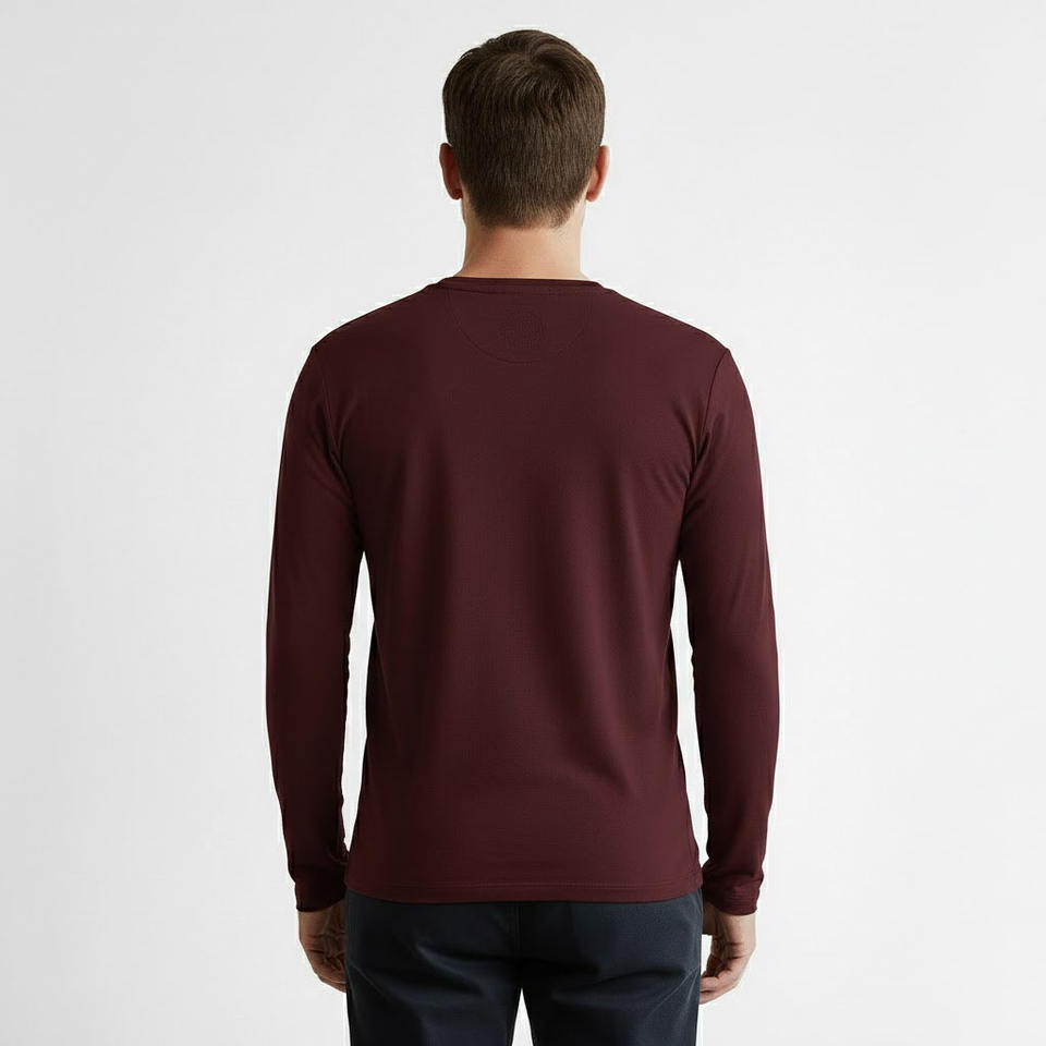 Mens Bamboo Knitted Henley Long-Sleeve T-Shirt Regular Fit with Chest Pocket Solid Casual Design Eco-Friendly