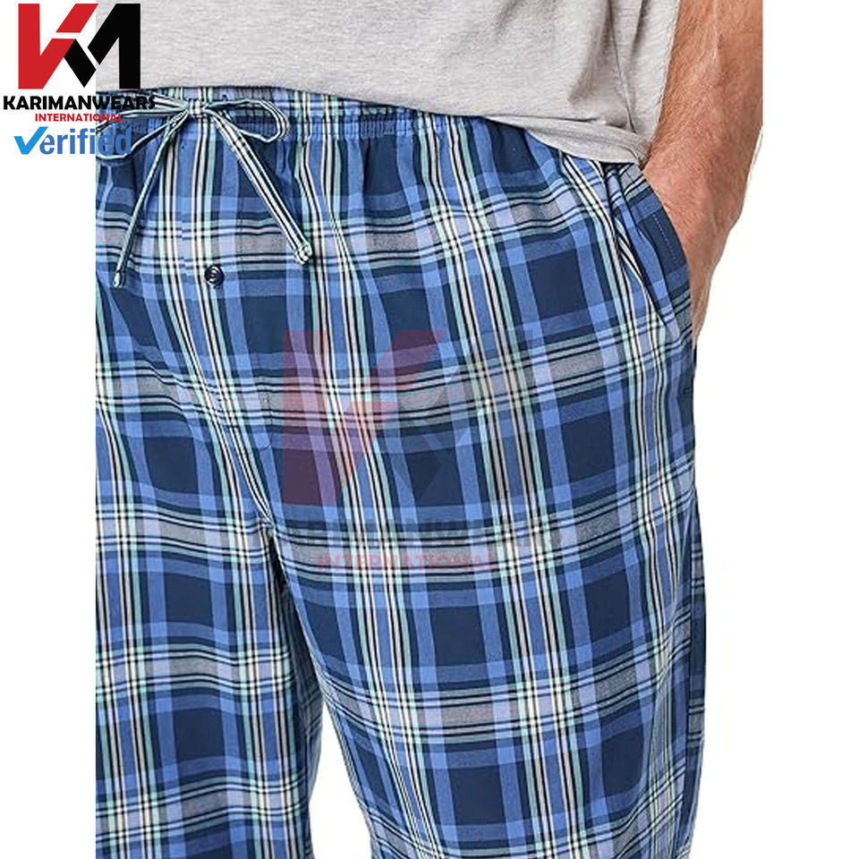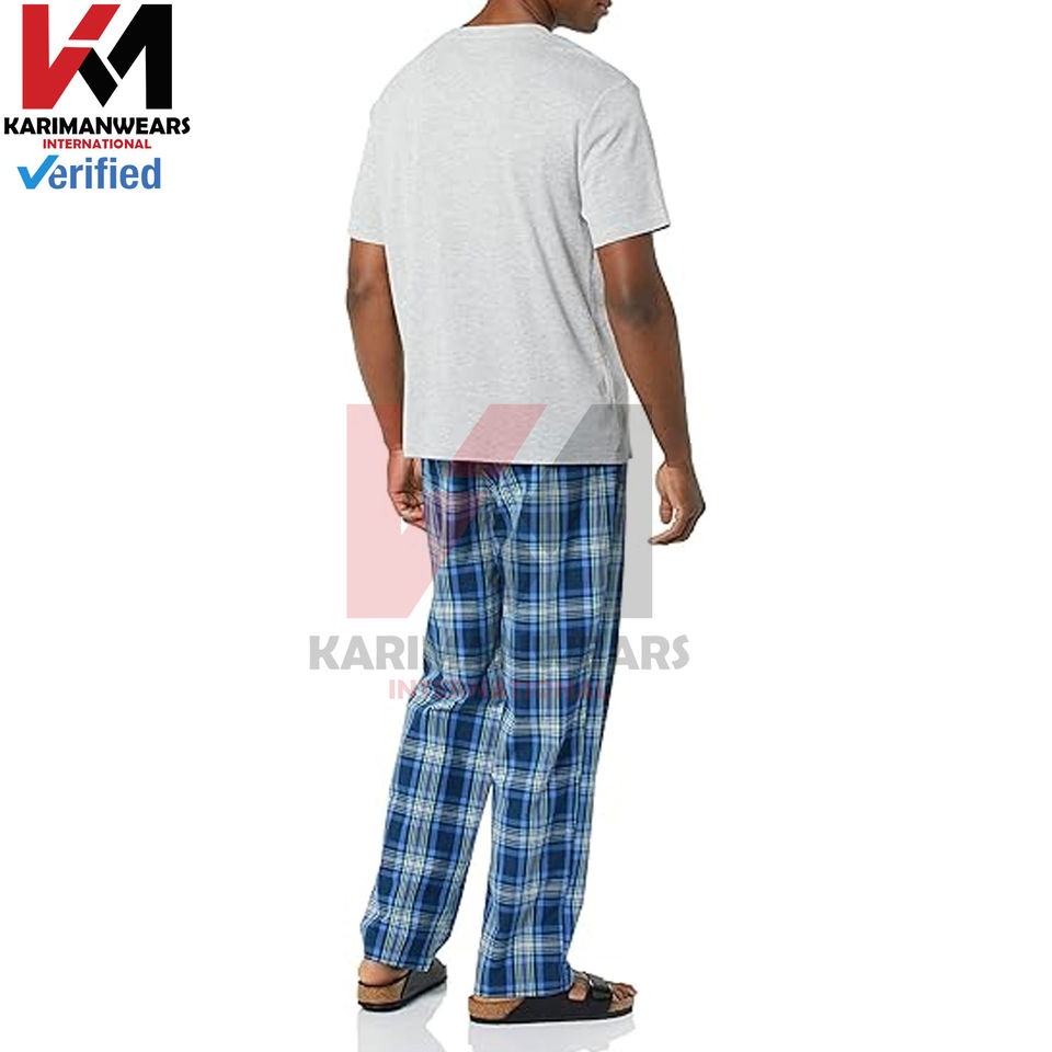 Mens Bamboo Viscose Pajama Set Soft Button Down Lounge Shirt Woven Plaid Sleep Pants with Pockets Breathable Lightweight