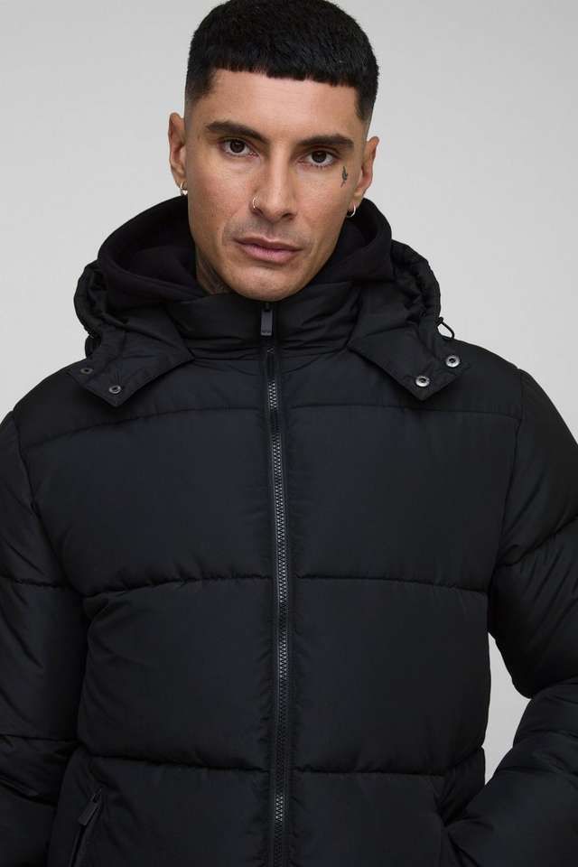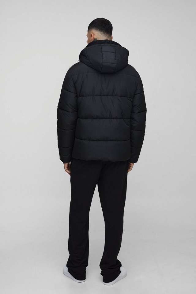Mens Black Hooded Puffer Jacket Winter Warm Quilted Down Coat Lightweight Windproof Outerwear Casual Streetwear