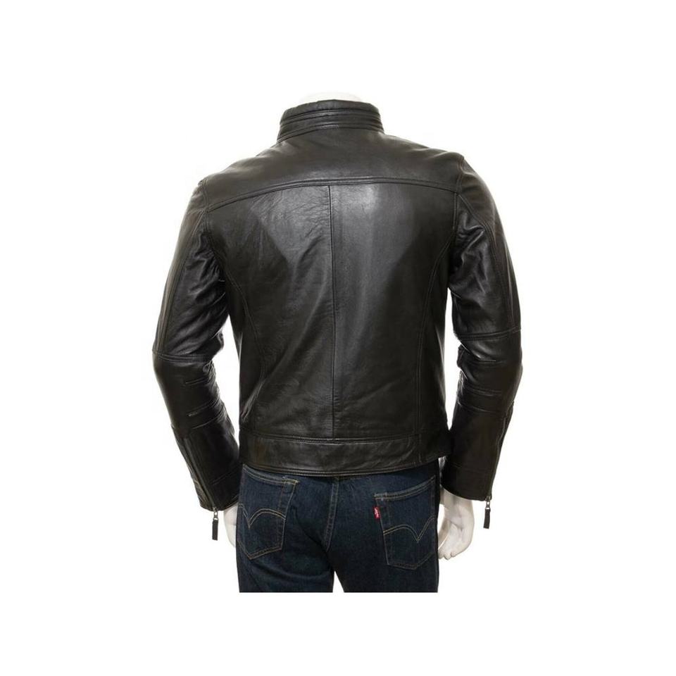 Men's Factory-Priced Biker-Style Jacket Black Leather With Hooded Collar-Lightweight For Winter New Outdoor Collection