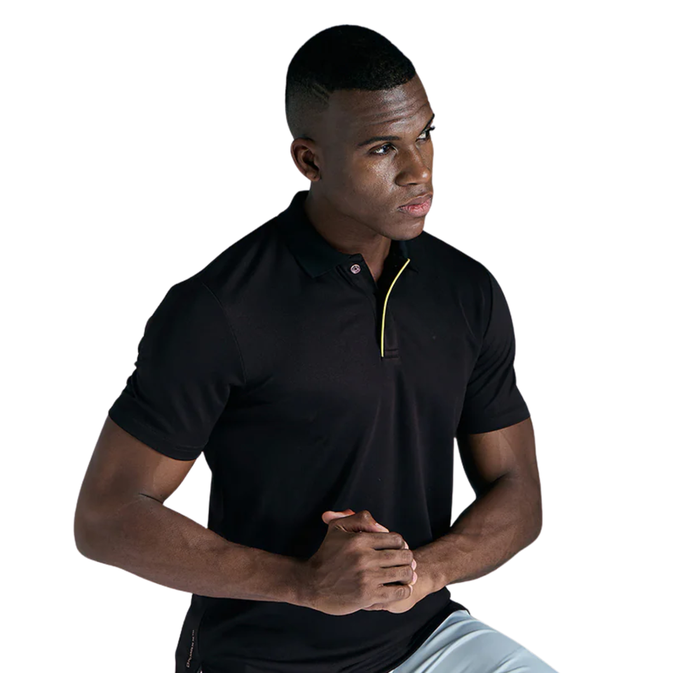 Mens Black Polo Shirt with Yellow Accent Stylish Activewear Comfortable Cotton Fabric for Gym Sports and Casual Wear