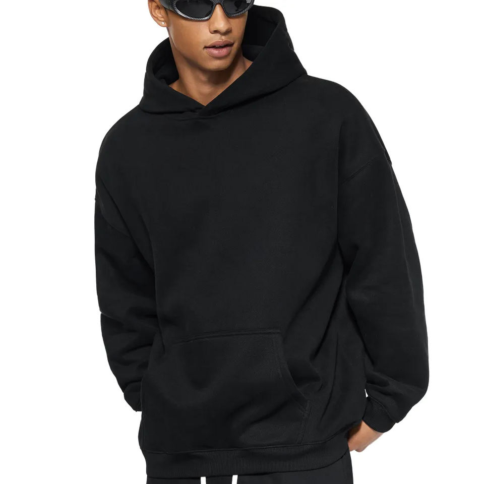 Mens Black Pullover Hoodie Plain Sweatshirt Soft Cotton Fleece Hooded Jumper Streetwear Comfy Warm Winter Hoodies Custom Logo