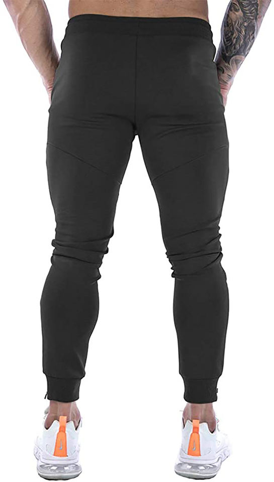 Mens Black Slim Fit Jogger Sweatpants Stretchy Elastic Waist Drawstring Casual Athletic Tapered Pants with Side Pockets breathable