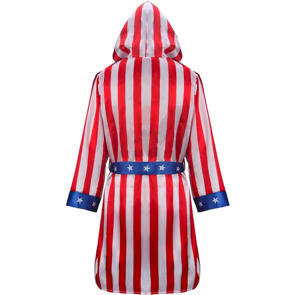 Mens Boxing Costume Satin American Flag Robe with Hood Shorts Belt & Cape Halloween Cosplay Champion Fighter Outfit