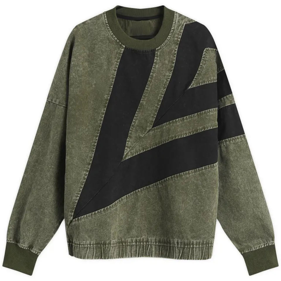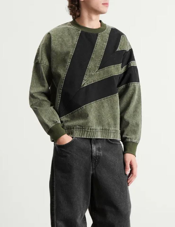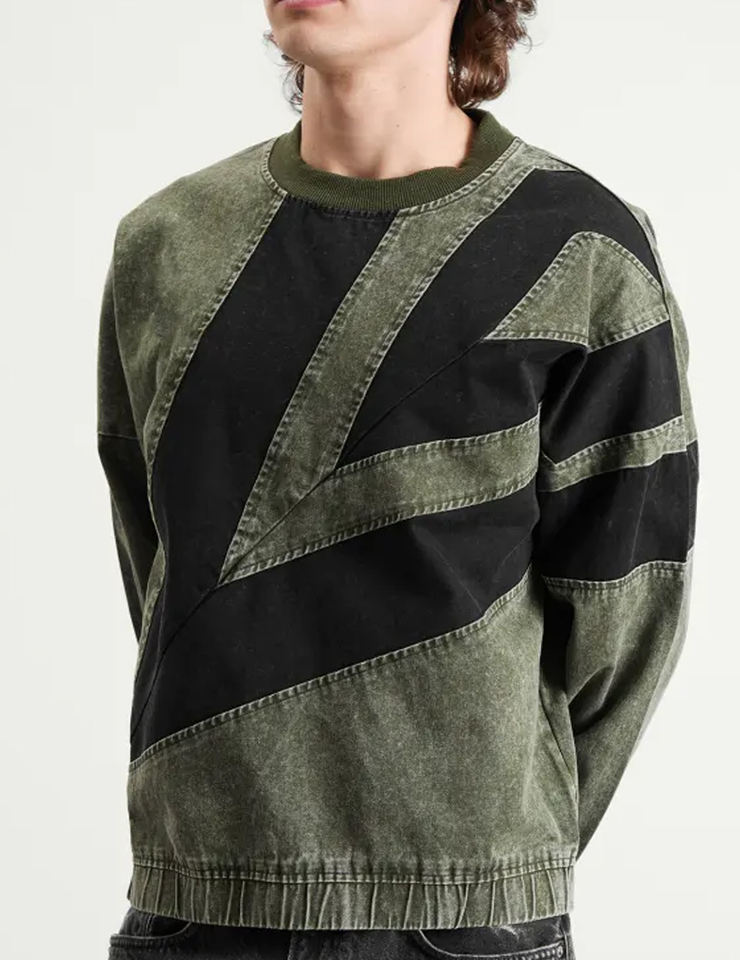 Mens Breathable Olive Green Acid Washed Sweatshirt Made From Pakistan OEM Services for Bulk Bold Black Contrast Panel Sweatshirt