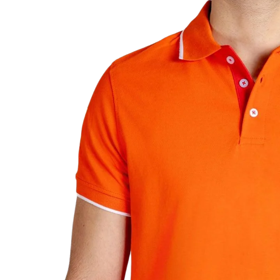 Mens Bright Orange Polo Shirt Stylish Cotton Casual Wear Comfortable Short Sleeve Polo with Contrast Trim Trendy Summer Shirt