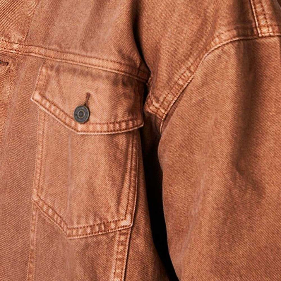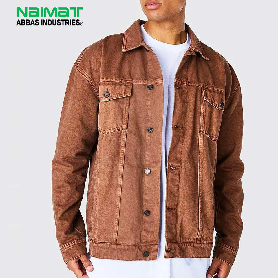 Mens Brown Denim Jacket Casual Classic Trucker Coat Relaxed Fit Cotton Jean Jacket Outerwear Fashion Street Wear New Style