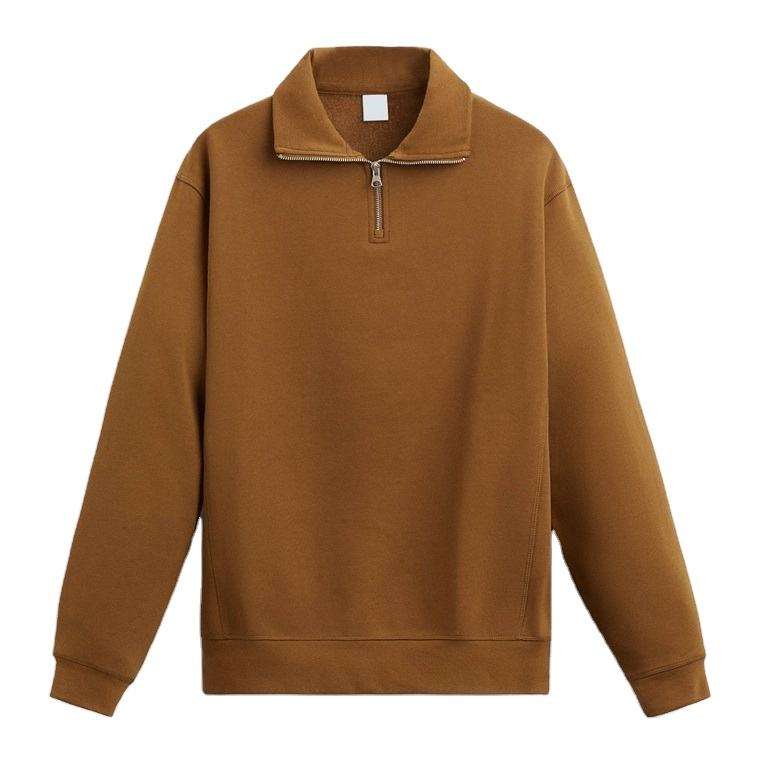 Mens Brown Half Zip Fleece Sweatshirt Warm Winter Pullover Soft Casual Long Sleeve Minimal Design Fashion Top