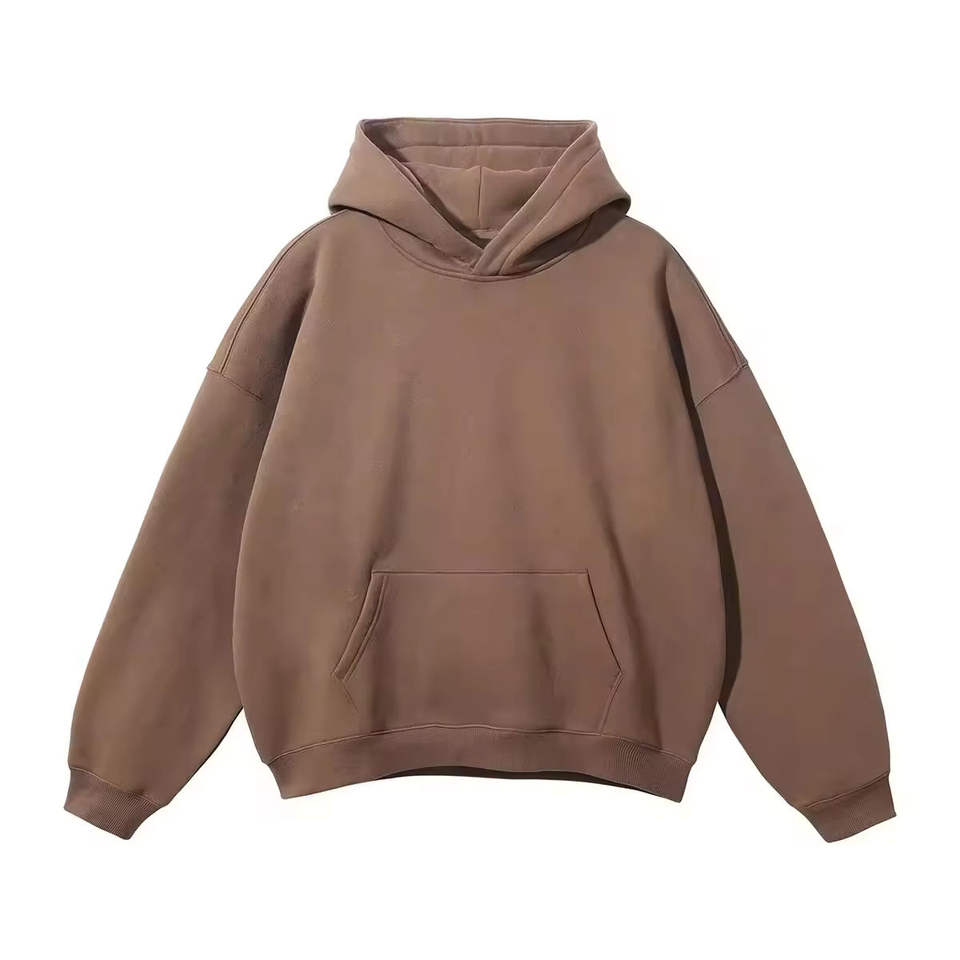 Mens Brown Plain Hoodie Pullover Fleece Sweatshirt Casual Streetwear OEM ODM Wholesale