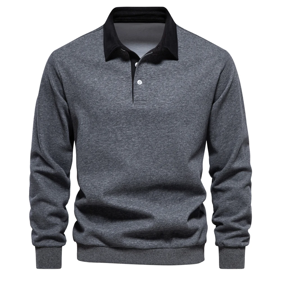 Mens Brown Polo Sweatshirt Long Sleeve Casual Pullover Soft Cotton Fashion Top Comfortable Winter Wear Stylish Outfit