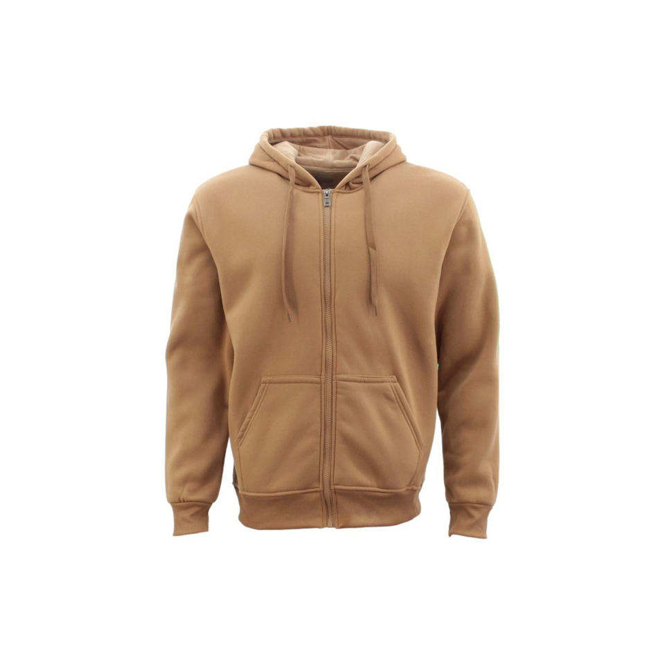 Mens Brown Zip Up Hoodie Plain Fleece Jacket Soft Warm Casual Comfortable Long Sleeve Hooded Sweatshirt Basic Style Everyday