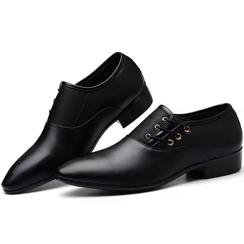 Mens Business Dress Leather Shoes British Leather Grain Pointed Tip Breathable Slip-On High End Handmade Formal Autumn Light