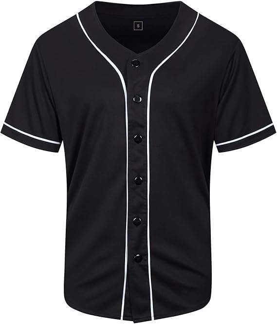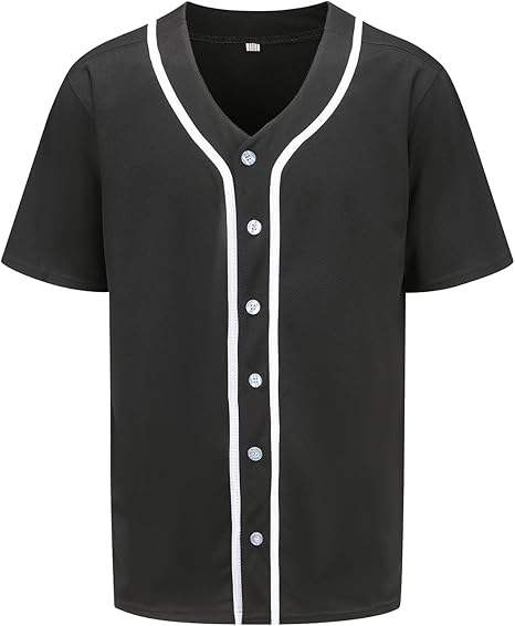 Mens Button Down Plain Baseball Jersey, Blank Softball Team Uniform, Hip Hop Hipster Short Sleeve Active Shirts Baseball Jersey