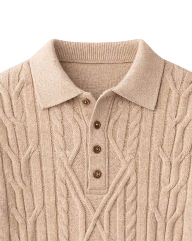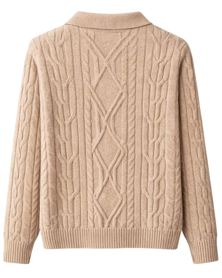 Mens Cable Knit Polo Sweater Long Sleeve Button Neck Soft Winter Pullover Top In Beige Khaki For Wholesale Bulk Supply Orders