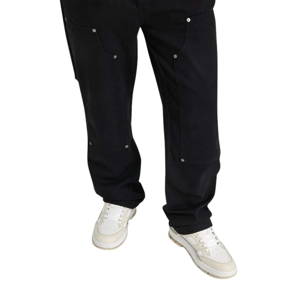 Mens Carpenter Denim Jeans Black Relaxed Fit Multi Pocket Durable Heavyweight Utility Streetwear Workwear Cargo Style