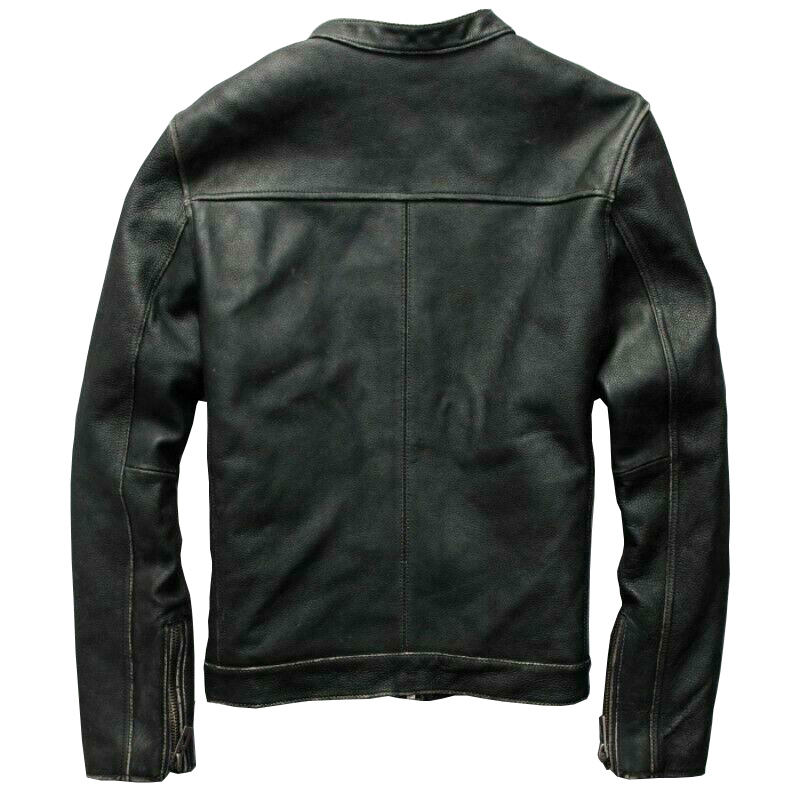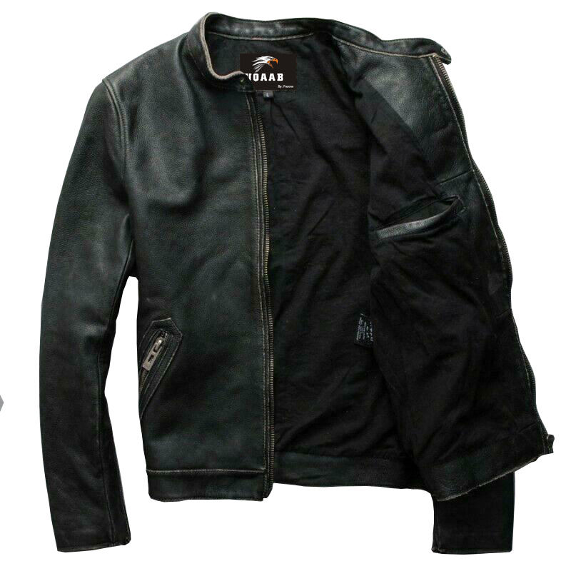 Mens Casual Biker Leather Jacket Retro Fashion Distressed Real Genuine Leather Vintage Streetwear Motorcycle Leather Jacket Coat