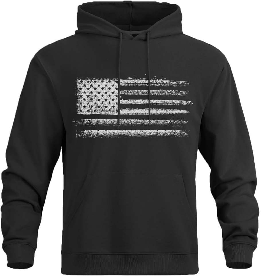 Mens Winter Casual Hoodie American Flag Print Sweatshirt Long Sleeve Pullover Drawstring Hood Kangaroo Pocket ODM Eco-Friendly