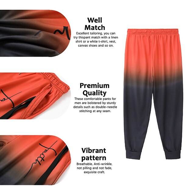 Mens Casual Mid Waist Canvas Sweatpants Straight Fit Digital Print Outdoor Athleisure Street Wear Trousers