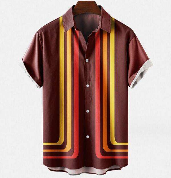 Mens Casual Printed Hawaiian Shirt New Summer Design Quick Dry Polyester Short Sleeve Beach Stripe Style