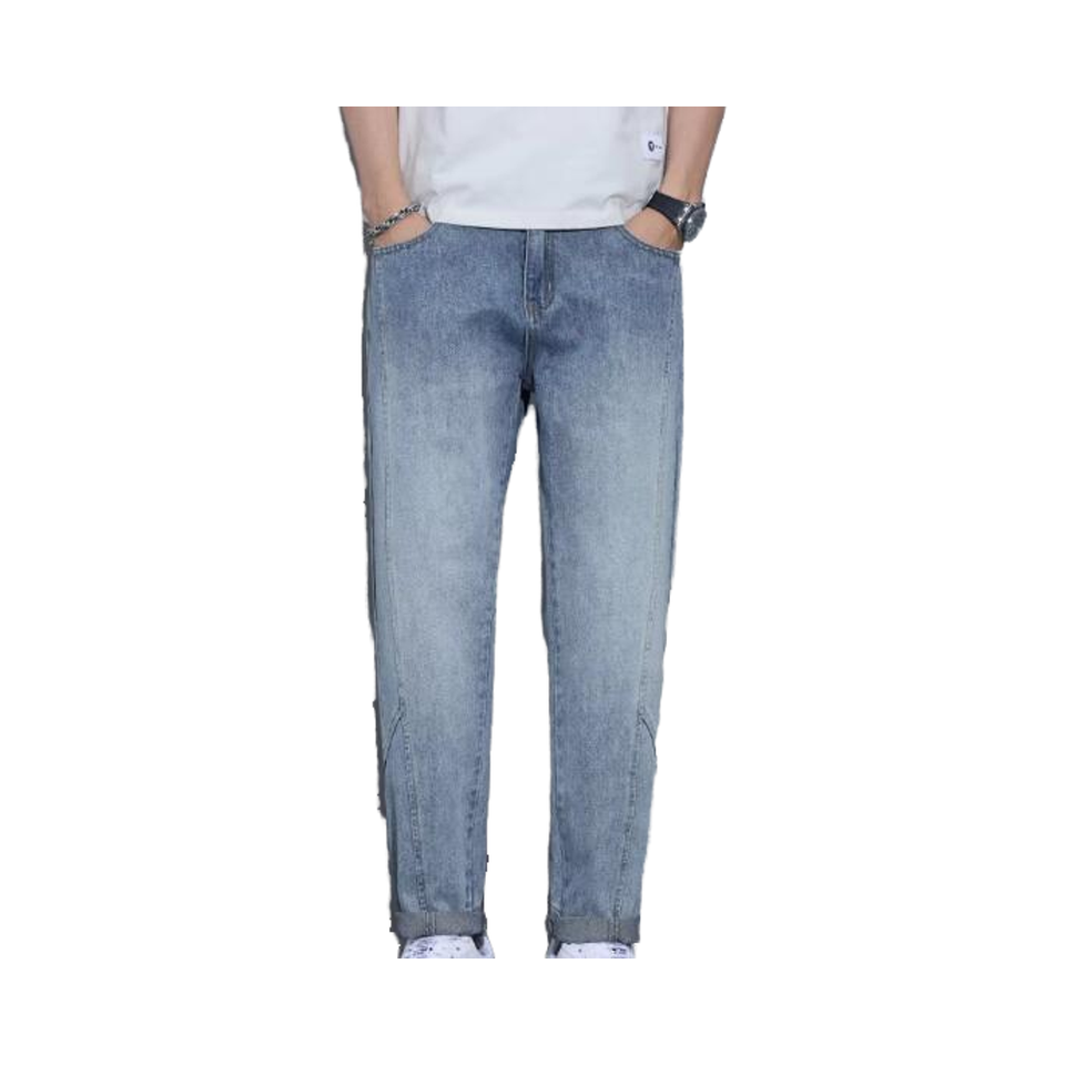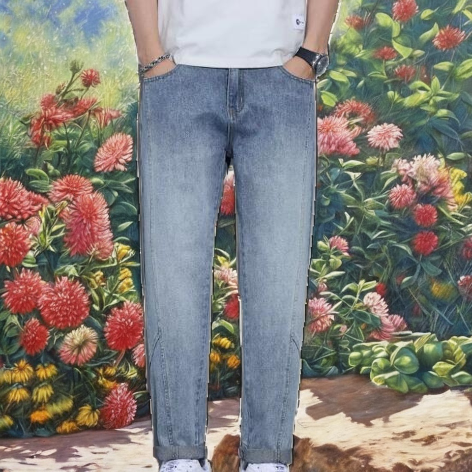 Mens Casual Solid Blue Jeans Spring Summer Mid Waist Loose Straight Pants Medium Wash Denim Fabric Quick Dry Popular Trending