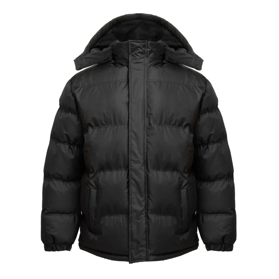 Mens Casual Winter Warm Puffer Jacket Hooded Bubble Coat with Fleece Lining Solid Zipper OEM Service Plain Dyed