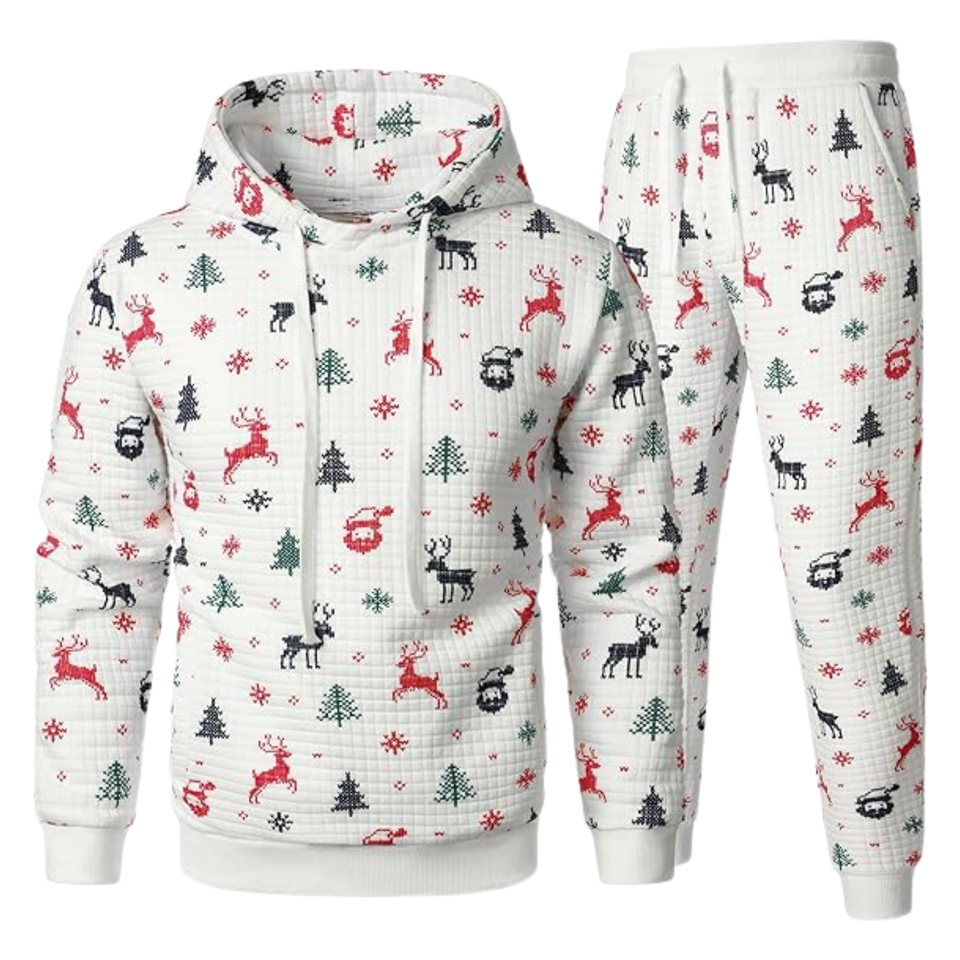 Mens Christmas Sublimation Tracksuit Hoodie and Pants Set Fun Reindeer Snowflakes Print Activewear Comfortable Sportswear