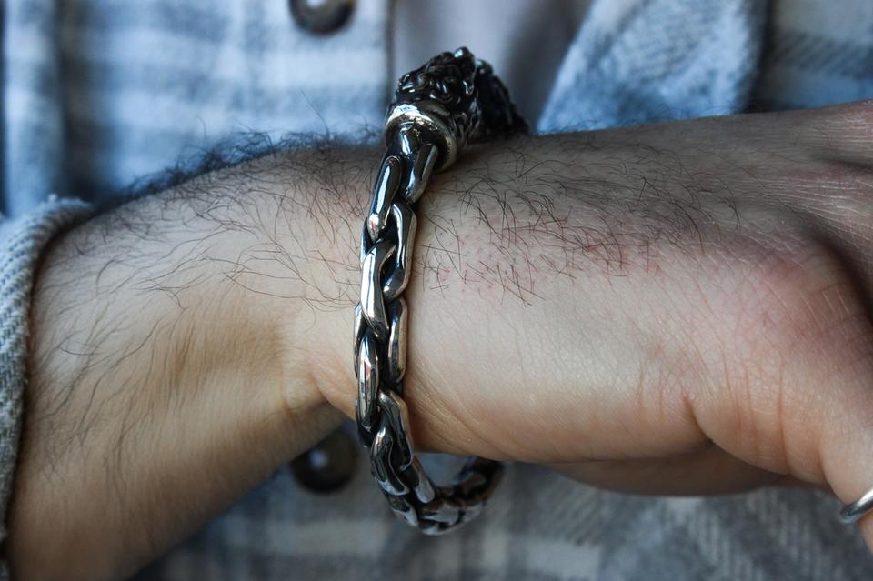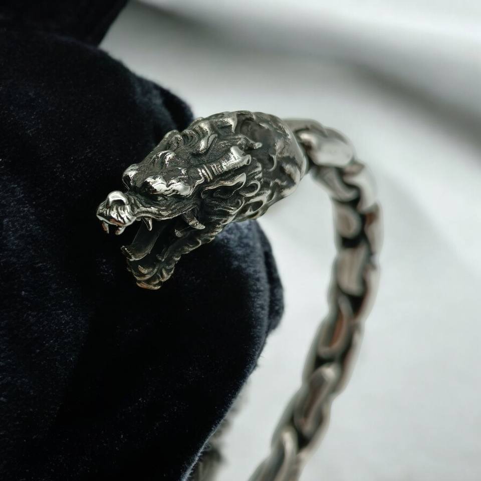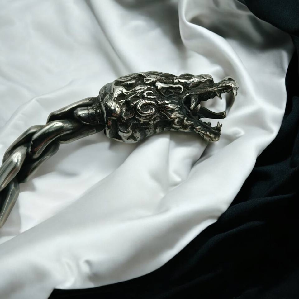Mens Chunky Dragon Bracelet Power Mythical Beasts Handmade 925 Sterling Silver Jewelry Black Rhodium Plated Certified Norse