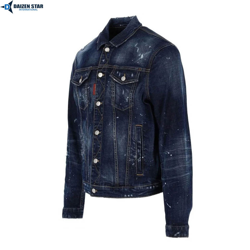 Mens Classic Casual Denim Outerwear Vintage Style Trendy Streetwear Stone Patches Button Eco-Friendly Windproof Comfortable