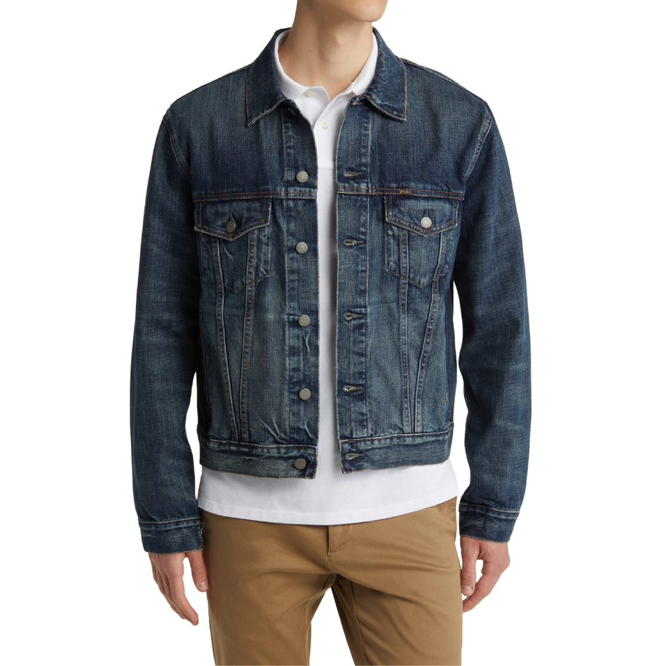 Mens Classic Denim Trucker Jacket Button Closure Rugged Stitch Outdoor Casual Wholesale
