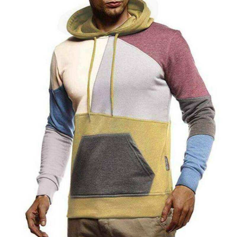 Mens Color Block Hoodie Sweatshirt Casual Pullover Tops Long Sleeve Hooded Tops