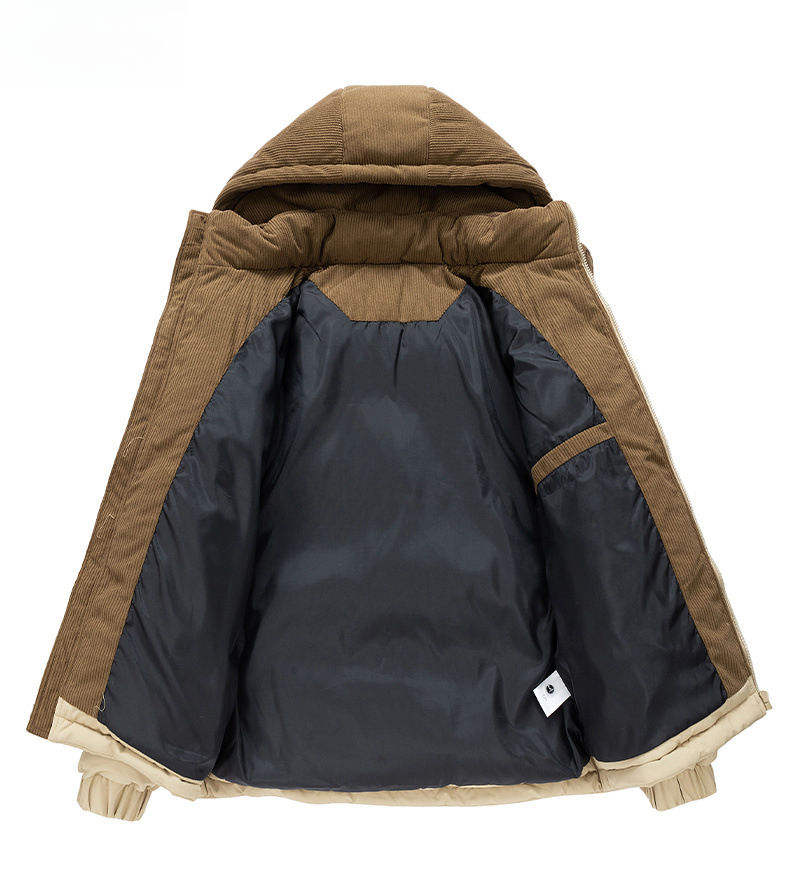 Mens Color Block Puffer Jacket Two Tone Hooded Winter Coat Warm Bubble Jacket Green Brown Blue Padded Outerwear Stylish Fashion