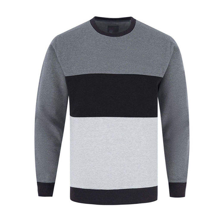 Mens Color Block Sweatshirt Grey Black Casual Long Sleeve Pullover Fashion Streetwear Top Comfortable Cotton Winter Wear