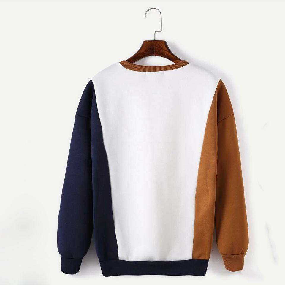 Mens Colorblock Sweatshirt White Brown Navy Casual Round Neck Stylish Soft Pullover Winter Warm Top