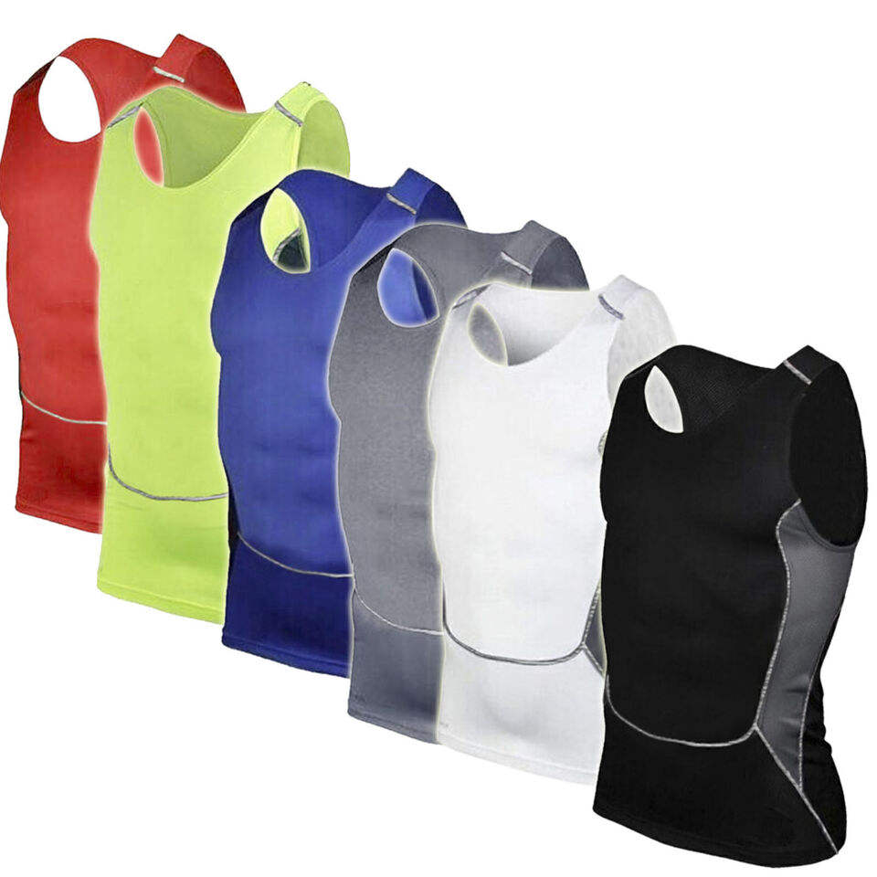 Mens Compression Tank Top Sleeveless Gym Vest Quick Dry Athletic Base Layer Tight Fit Bodybuilding Workout Sports Shirt