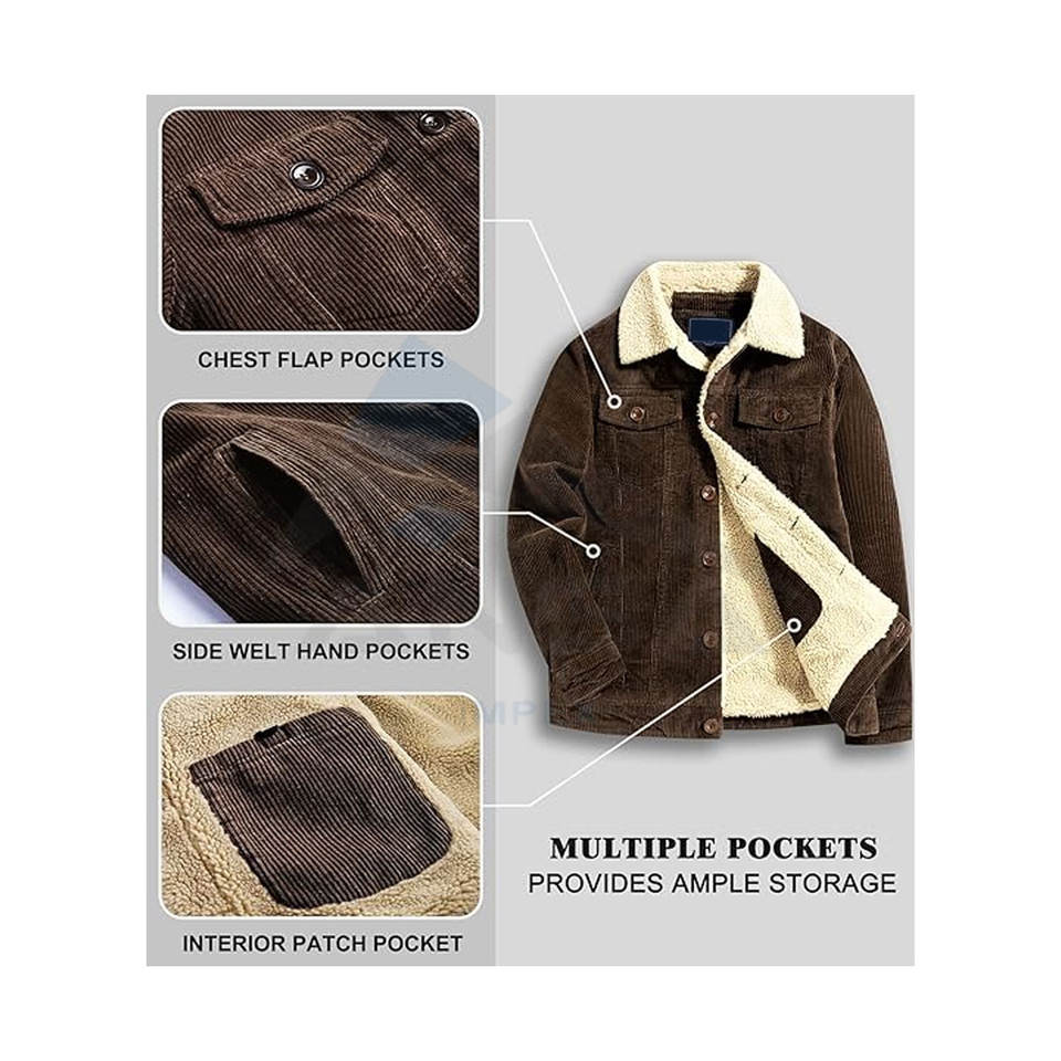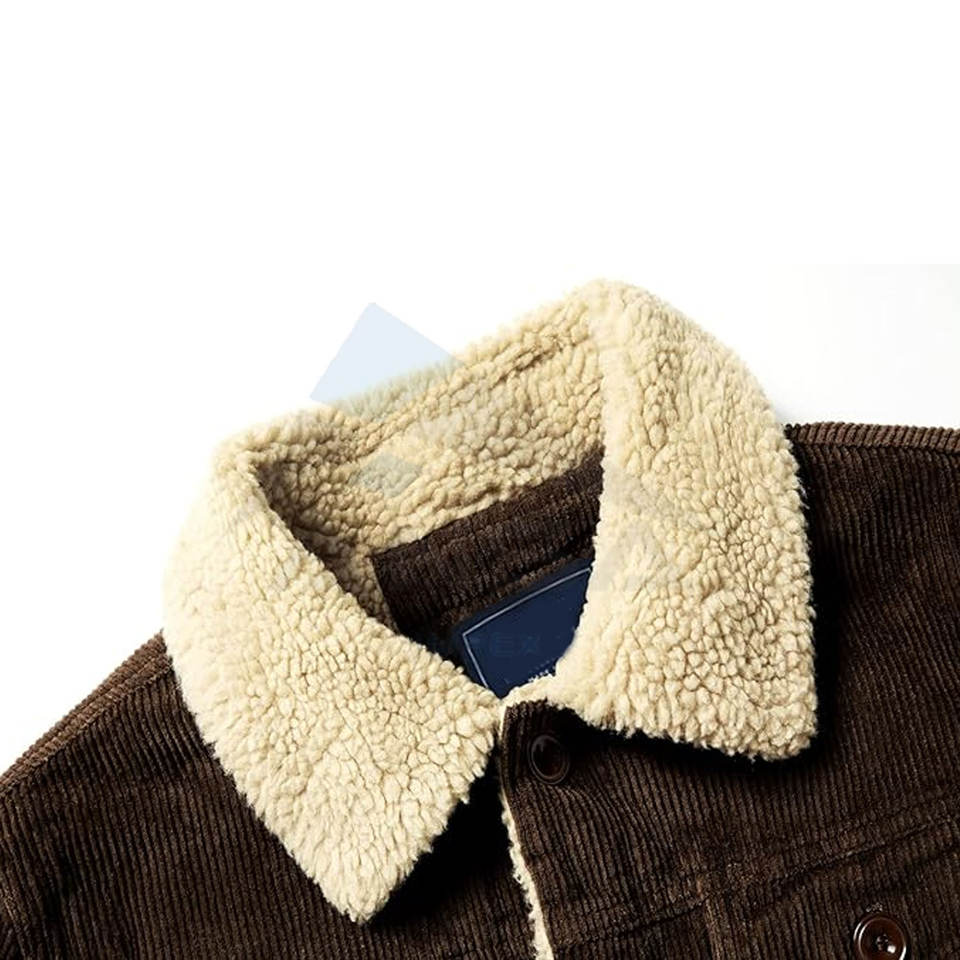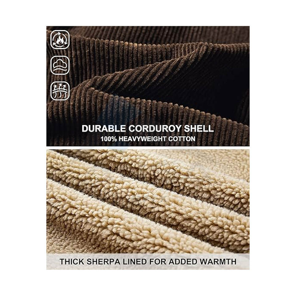 Mens Corduroy Sherpa Lined Trucker Jacket Thickened Warm Winter Coat Casual Vintage Style Outerwear for Cold Weather Daily Wear
