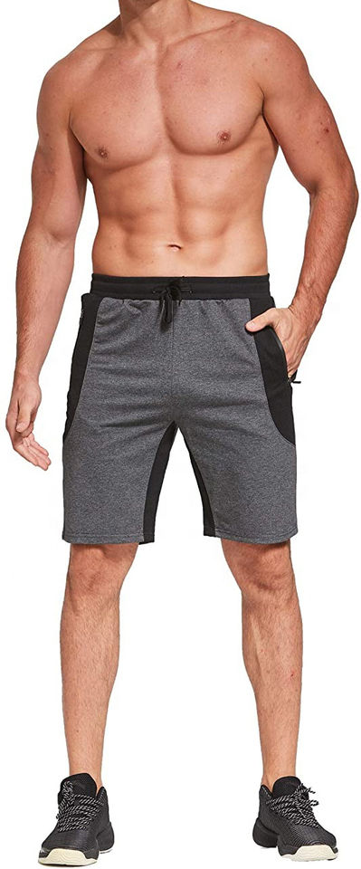 Mens Cotton Casual Lounge Fleece Shorts Jogger Workout Gym Sweat Short Athletic Shorts with Zip Pockets