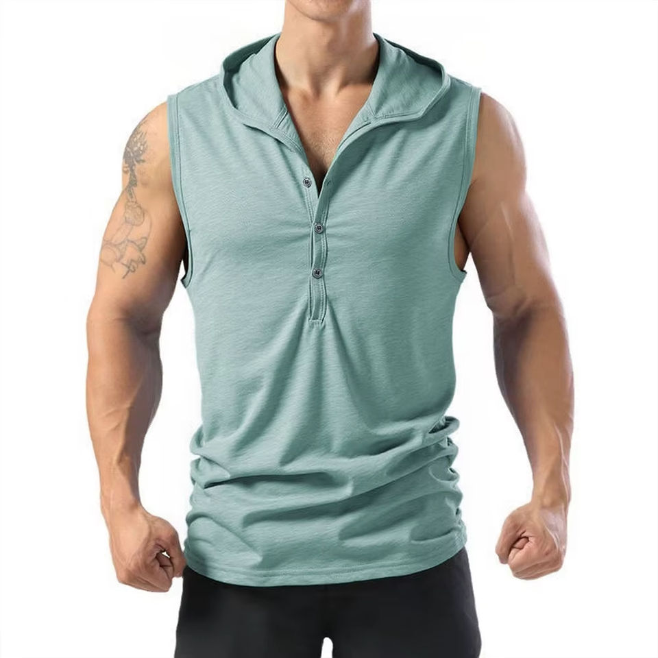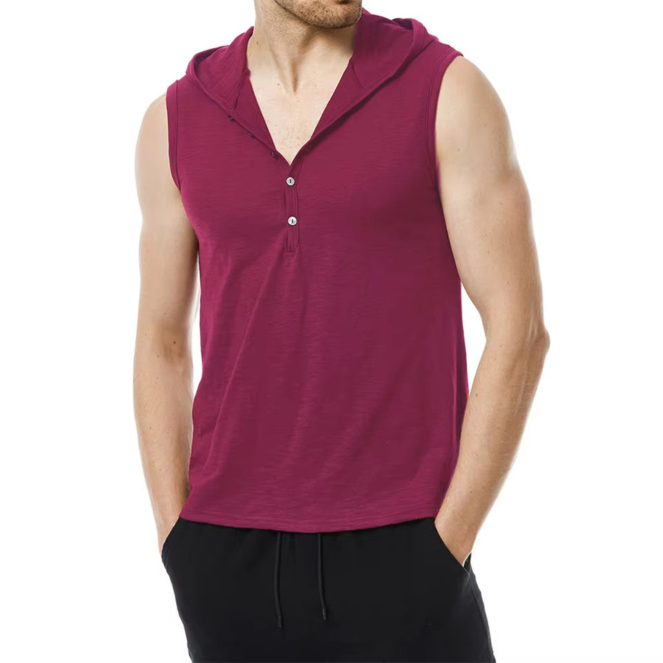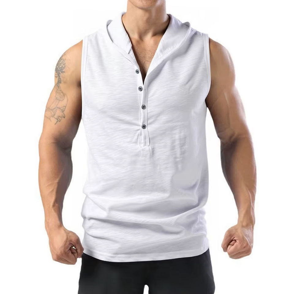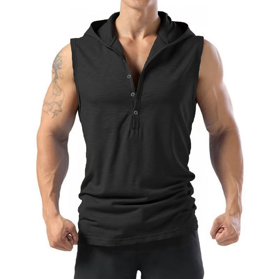 Product name:Mens Cotton Tank Top | Sleeveless Hooded T-Shirt | Button Up Gym Vest